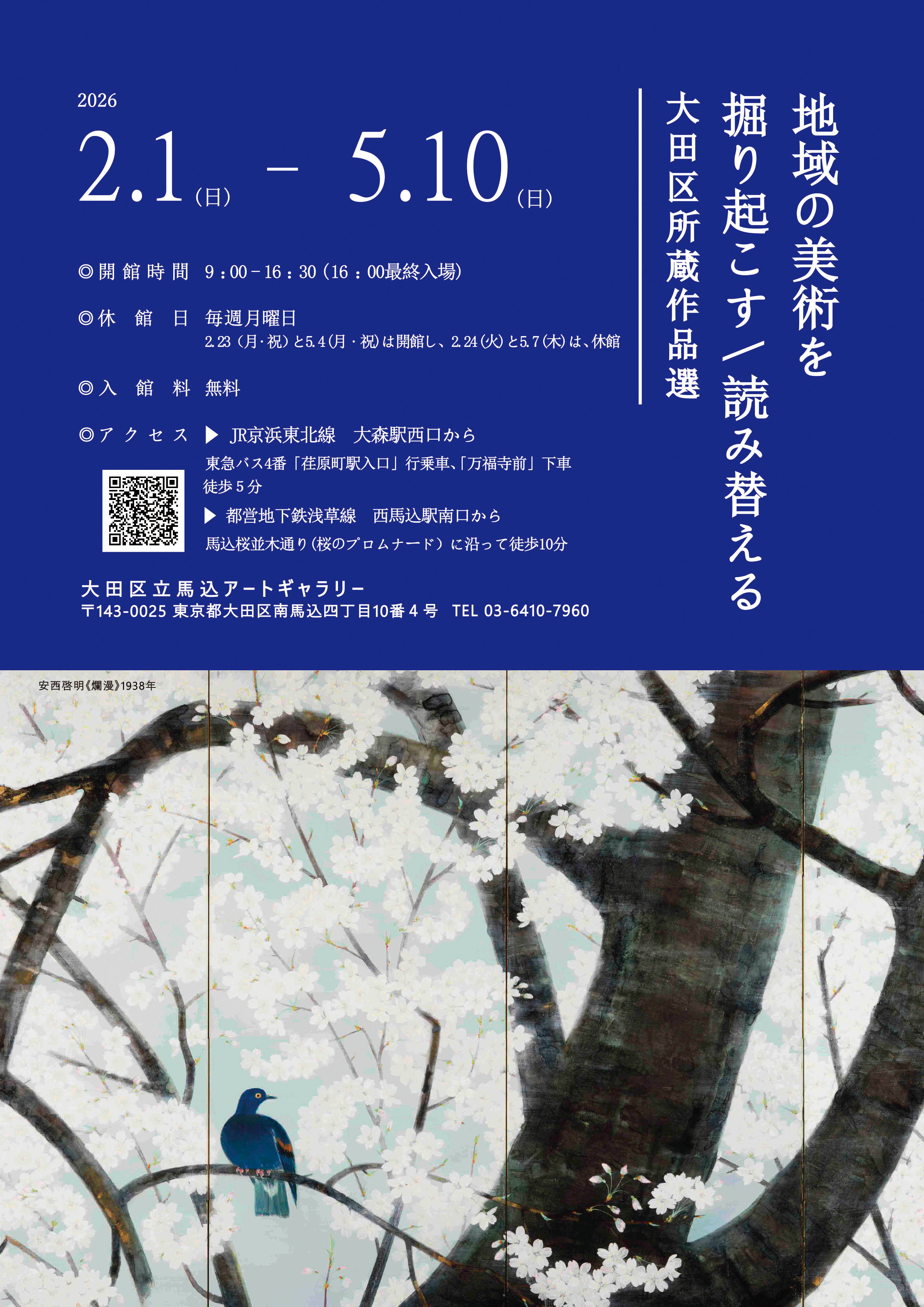 Музейдин ачылышын эскерүүчү бул көргөзмө "Жергиликтүү искусствону ачуу/кайра чечмелөө" деп аталат жана анда музейдин коллекциясынан Ота шаарына мүнөздүү болгон, Шова доорунан Хейсей дооруна чейинки сүрөттөр көрсөтүлөт. Чыгармаларга жана сүрөтчүлөргө байланыштуу материалдар аркылуу биз мурда белгисиз болгон тарыхты жана бул сүрөтчүлөр менен байланышты ачып, сүрөтчүлөрдүн басып өткөн жолун жана алардын чыгармаларынын маанисин заманбап көз караштан кайра карап чыгууга аракет кылабыз.